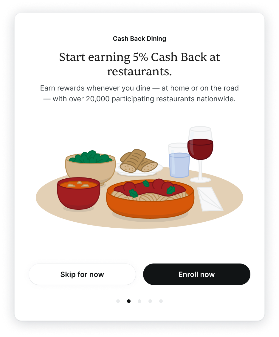 Cash Back Dining — earn at 20,000+ restaurants across the U.S. (USD users only)